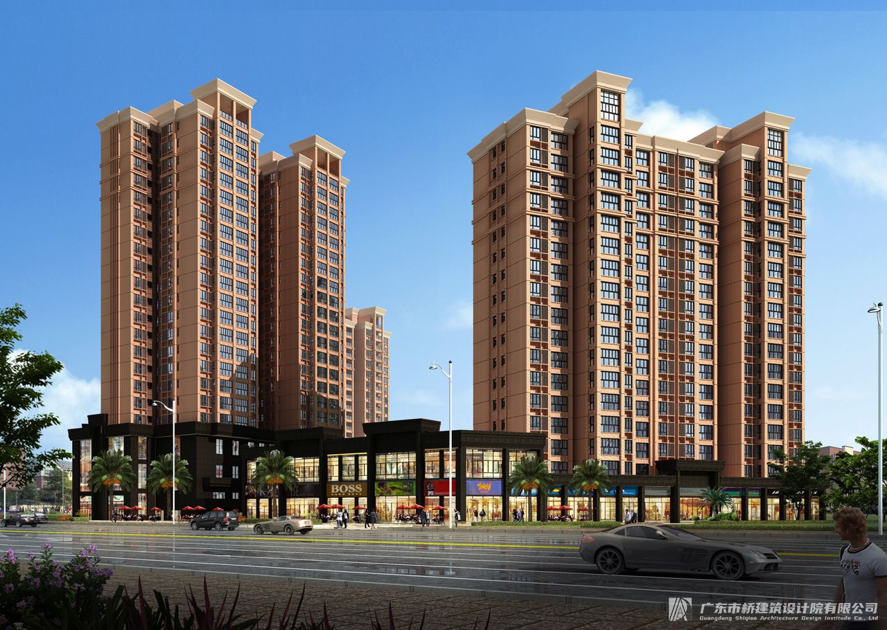 在立面造型處理上,立面設(shè)計(jì)簡約現(xiàn)代風(fēng)格,黃色外墻磚,藍(lán)色玻璃,褐色百葉,商鋪部分采用局部幕墻設(shè)計(jì),結(jié)合構(gòu)架的造型,簡約而又不失大氣。